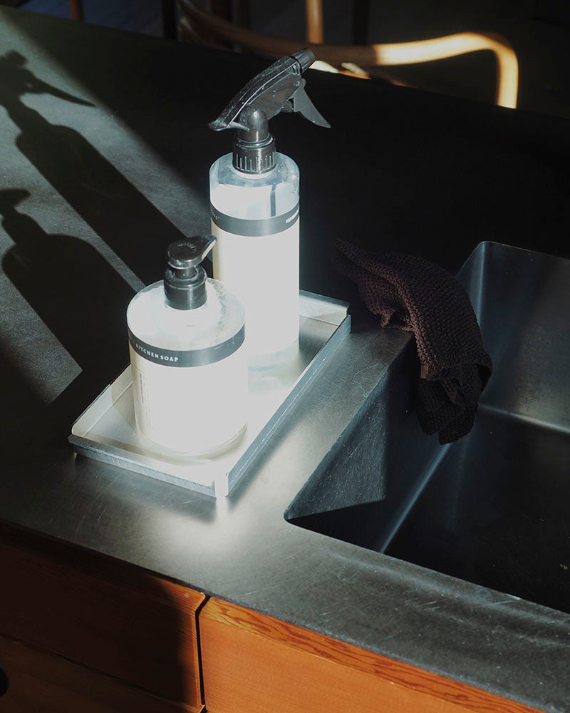 En enkel og funktionel bakke, bukket i hånden af vores lokale smed. Fremstillet i aluminium, hvilket giver et let, men robust udtryk, der både kan bruges i køkkenet, på spisebordet eller som dekorativ base. Det minimalistiske design og den håndværksmæssige kvalitet gør bakken til et tidløst stykke interiør, hvor materialets rene flader og skarpe linjer får lov til at tale for sig selv.