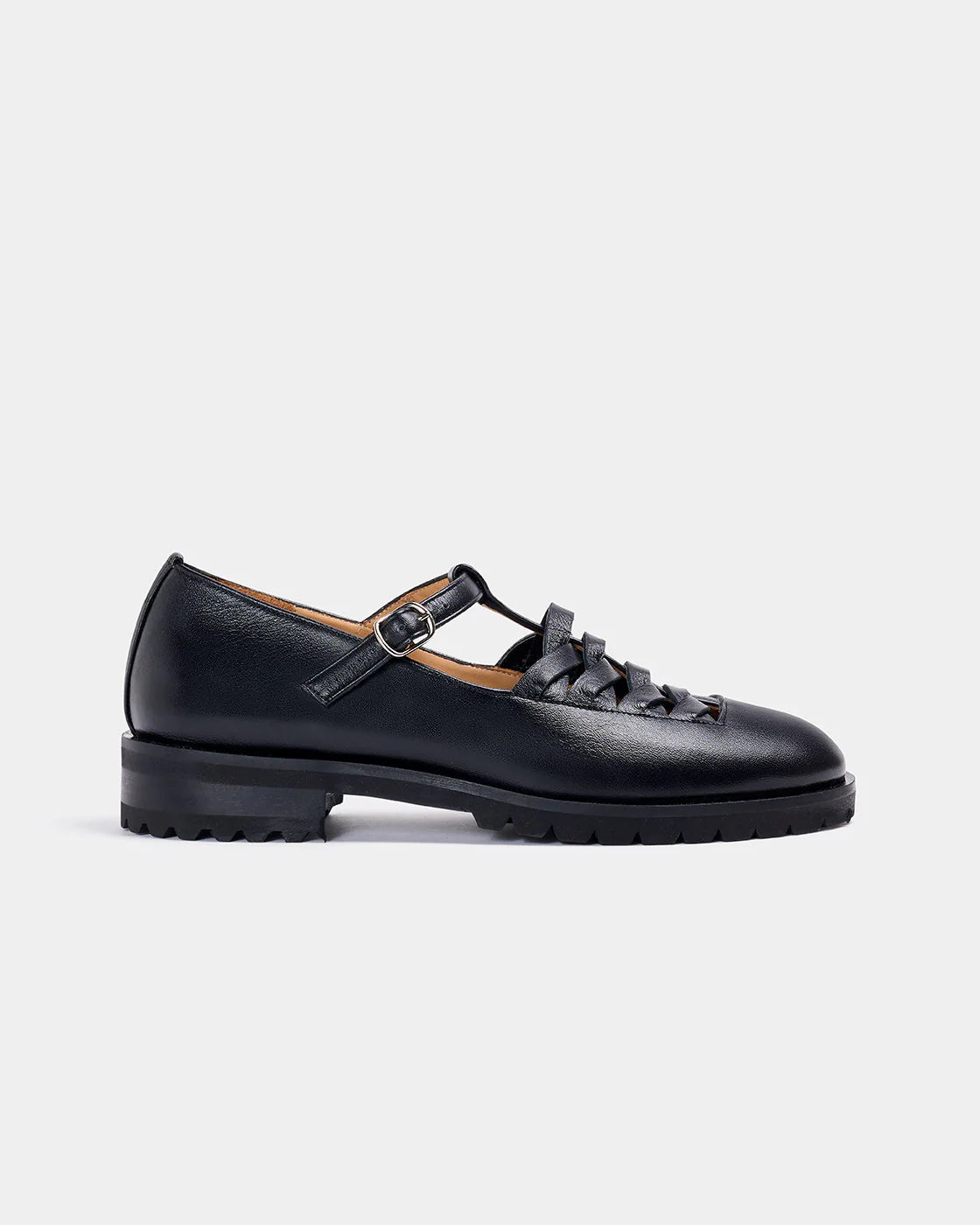 IMAI is a T-shaped Mary Jane shoe. The uppers are made of cowhide with a suede detail at the toe. Round toe. Natural cowhide lining. Removable foam insole. Non-slip rubber tread sole.